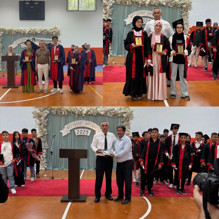 Okulumuzda dereceye giren lise ve ortaokul öğrencilerimize ödülleri verildikten sonra, birinci olan öğrencilerimiz mezuniyet kütüğüne isimlerini çaktılar ve Rehber öğretmenler tarafından mezuniyet belgeleri takdim edildi.